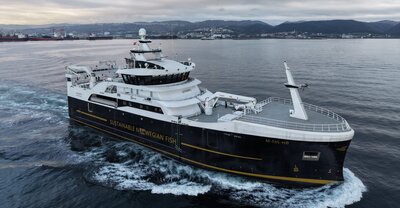 The new combined longliner and danish seiner "Leinebris" built at Tersan Shipyard in Turkey.